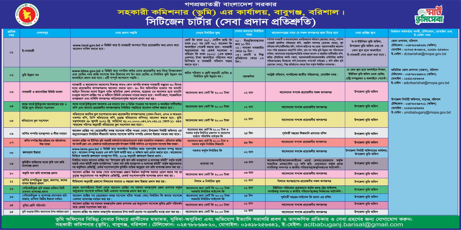 ক)নামজারী/রেকর্ড সংশোধনঃ mutation.land.gov.bd এই ঠিকানায় গিয়ে অনলাইনে নামজারিন জন্য আবেদন করতে হবে। প্রয়োজনীয় আইনানুগ ব্যবস্থা/তদন্ত শেষে ২৮ দিনের মধ্যে নামজারী/রেকর্ড সংশোধন হবে। খরচ- ১১৭০/- টাকা প্রায়।